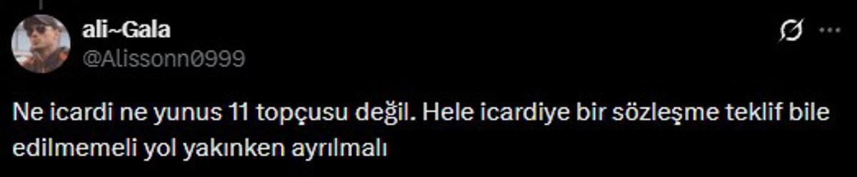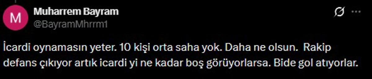 Galatasaray'da tepkiler, sosyal medyada da devam etti. Maçın ardından birçok taraftar, oyuncuları, yönetimi ve teknik heyeti sert bir şekilde eleştirdi. Tepkilerden nasibini alan isimlerden birisi de takımın Arjantinli yıldızı Mauro Icardi oldu.